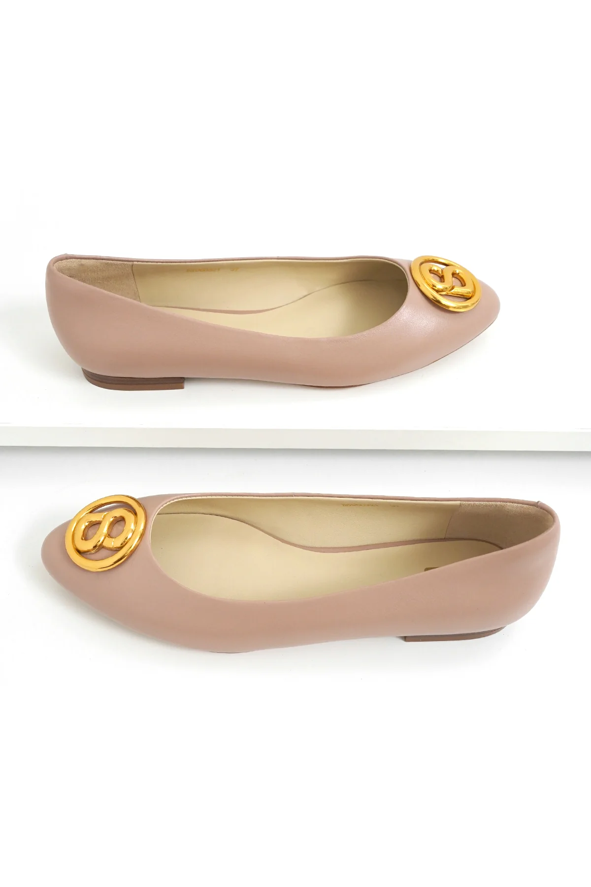 The soft and comfortable shoe is designed with a pointed toe shape in a classic and flattering profile. Accentuated with the rounded brass B-Logo that meets the elegance.