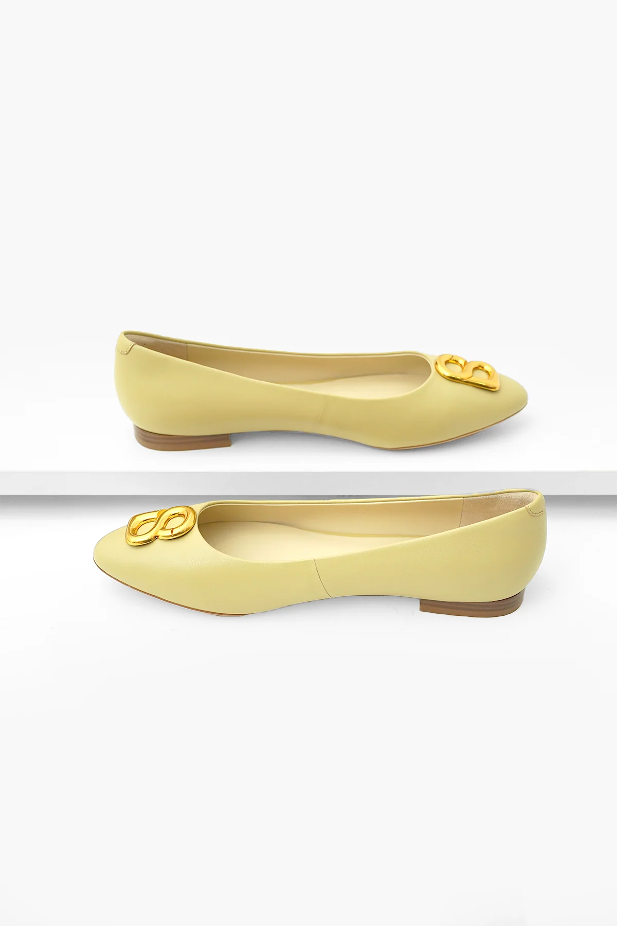 Youāre on your way to discovering your new favorite flat shoes! This pair of comfortable flat shoes are made from soft genuine leather with pointy toe silhouettes adorned with the gold signature Buttonscarves hardware to add elegance.