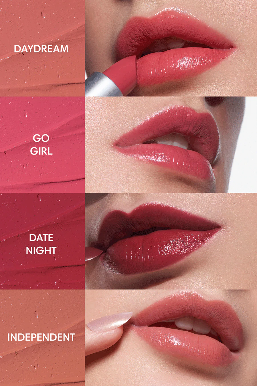 - For the lower lip, apply from the corners of the lip towards the center using the edges of the bullet
