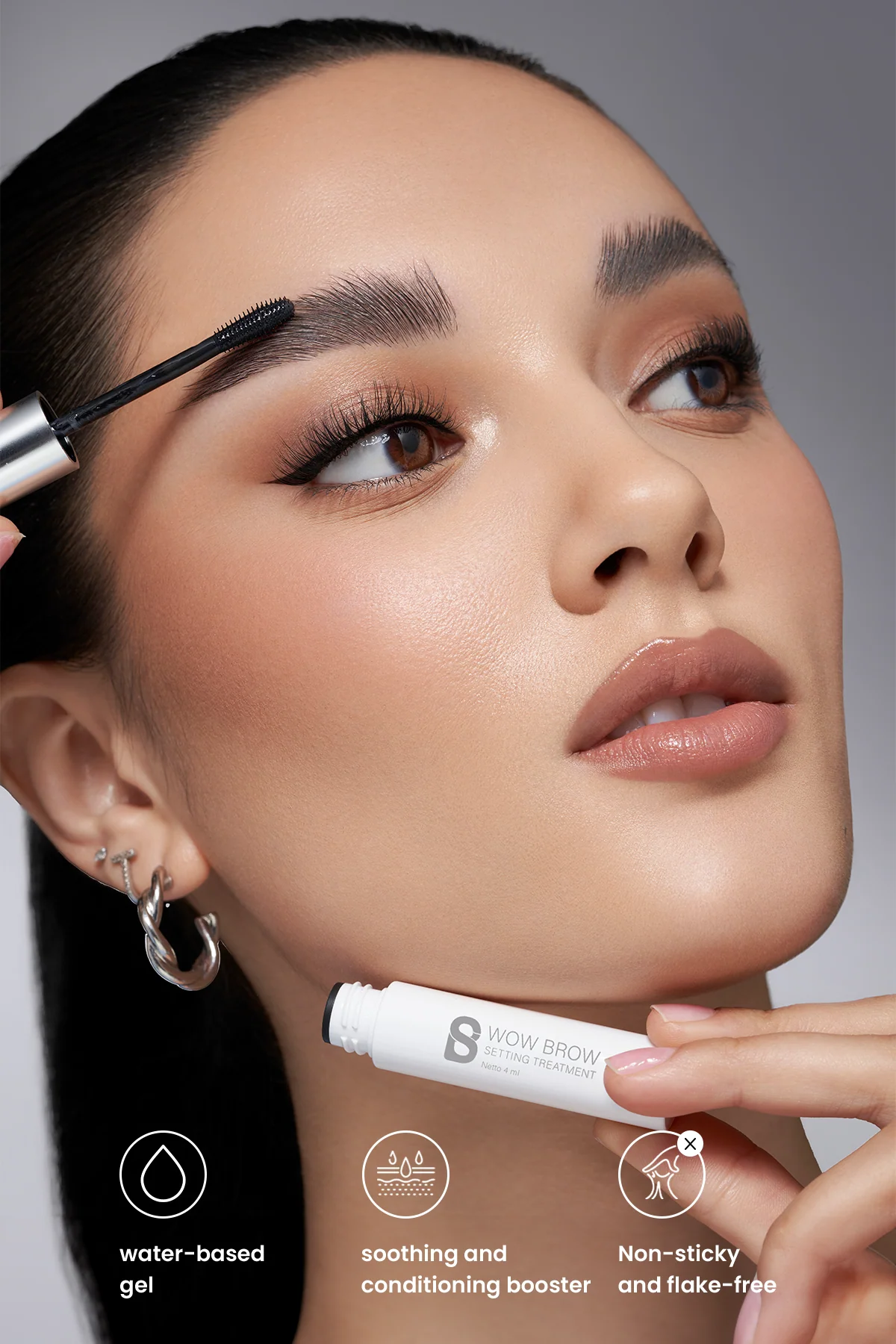 - Use the back of the applicator to press your brows into place for a secure hold